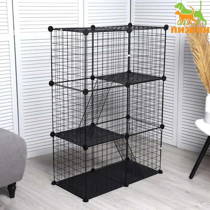 Вольер 24 секции, металлический, черный, 210 х 210 х 35 см, (35 х 35 см звено)