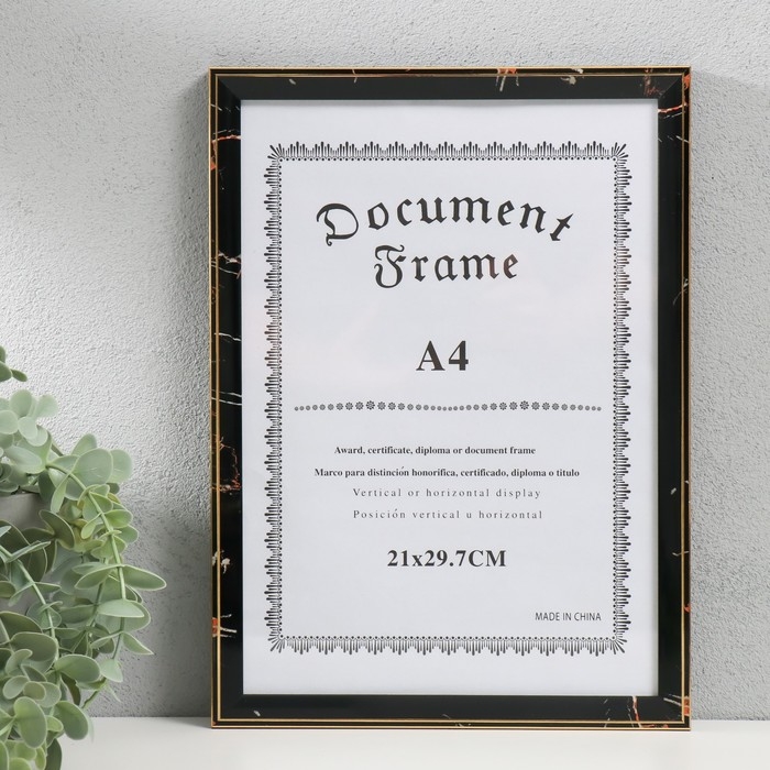Фоторамка пластик формат А4 "Черный мрамор с золотой рамкой" 23х32 см