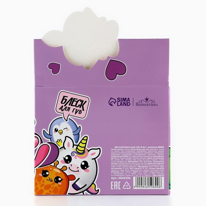 Детский блеск для губ «Милота» с колечком, 8 мл, МИКС