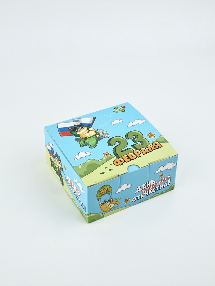 Подарочная коробка, упаковка «23 февраля, кот», 15 х 15 х 7 см