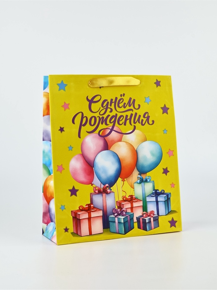 Пакет подарочный, упаковка, «С Днём рождения», M. 25,5 × 30 × 9 см