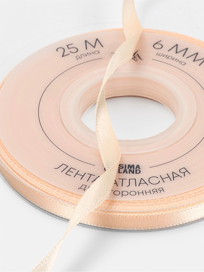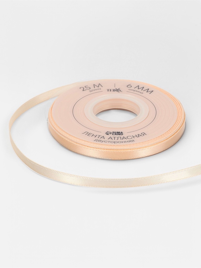 Лента атласная двухсторонняя №112 6мм*25±1м айвори TR