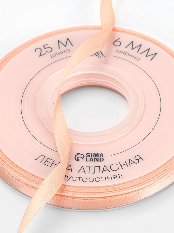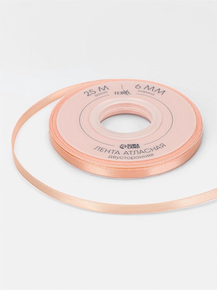 Лента атласная двухсторонняя №0714 6мм*25±1м персиковый пух TR