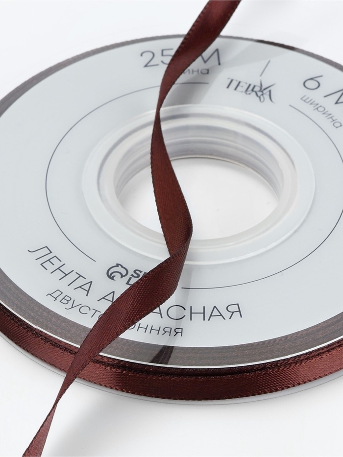 Лента атласная двухсторонняя №0850 6мм*25±1м орехово-коричневый TR