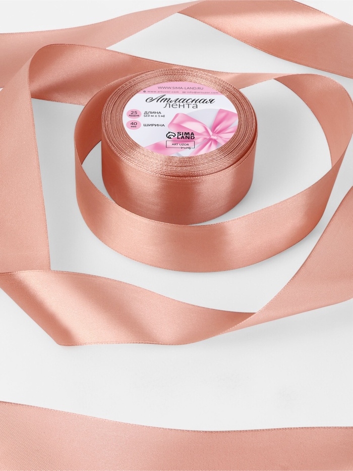 Лента атласная 40мм*25±1ярд(23м±1м) СП бежево-розовый АУ