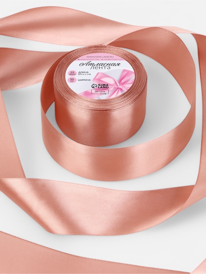 Лента атласная 50мм*25±1ярд(23м±1м) СП бежево-розовый АУ