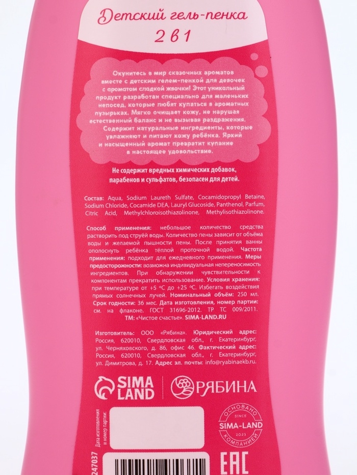 Гель-пена для девочек "Волшебная пена", сладкая жвачка, 250 мл