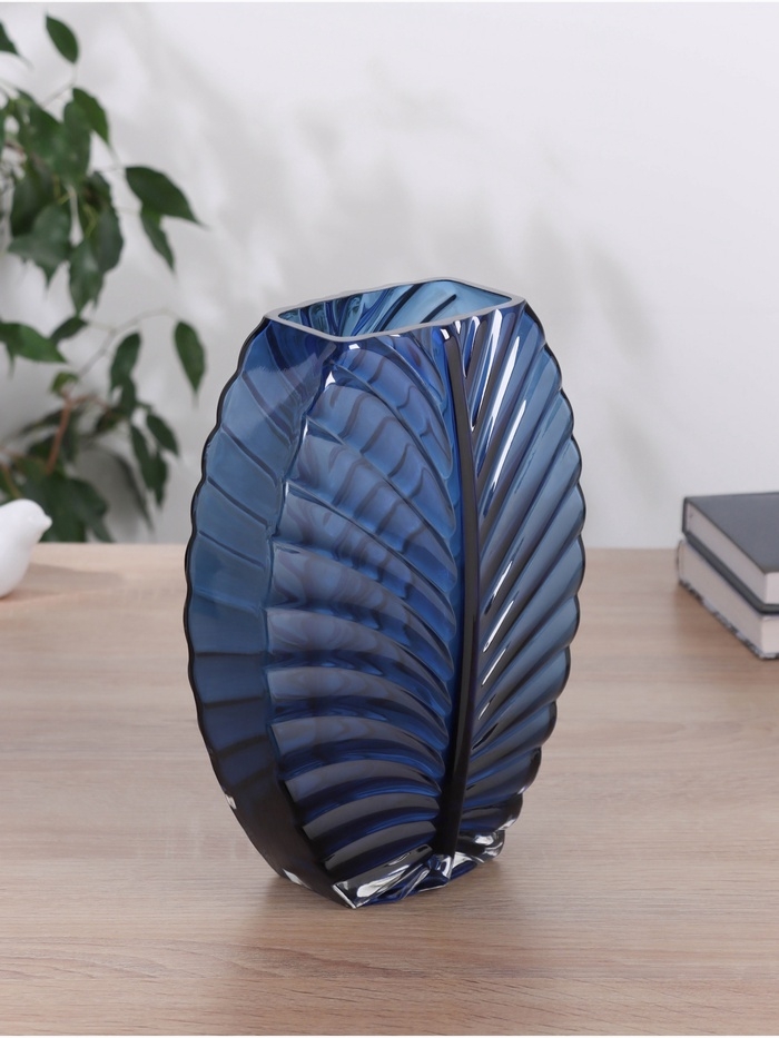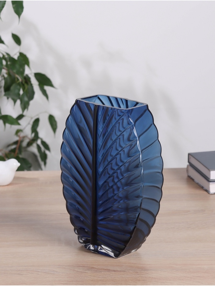 Ваза стекло настольная "Эдисон стиль" d-10*6 см, h-25х18,5 см, синий
