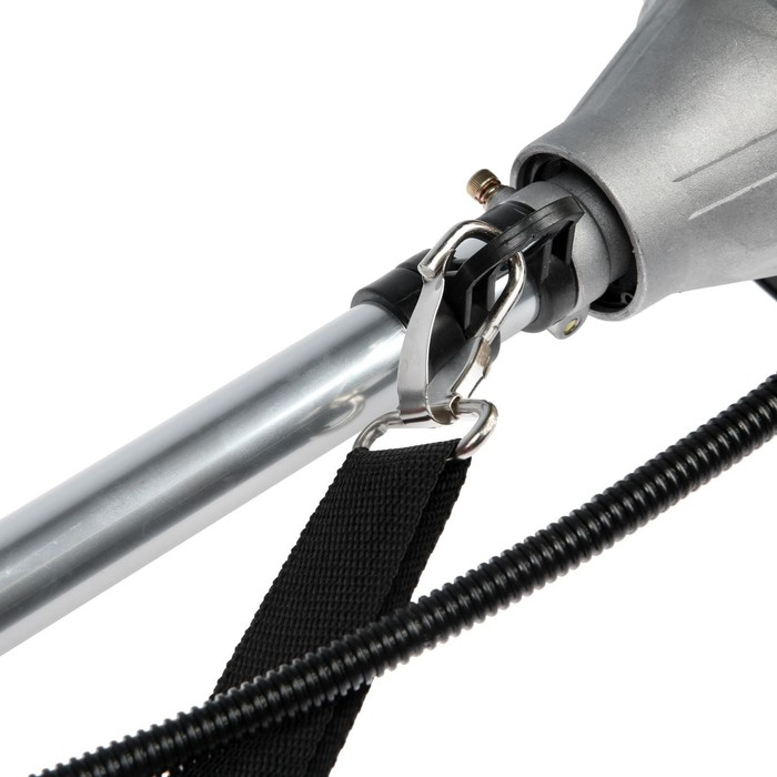 Разборная складная конструкция упрощает транспортировку и хранение инструмента. Специальный защитный кожух обеспечит безопасность оператора от вылетающей травы во время эксплуатации. В комплект входит наплечный ремень, благодаря которому равномерно распределяется нагрузка на мышцы во время работы.