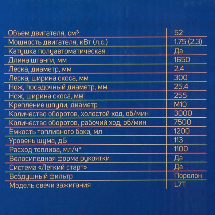 Двухтактный двигатель мощностью 2,3 л.с. и бак для топлива объёмом 1,2 л отвечают за качественную и длительную работу. Система «Лёгкий старт» обеспечивает наиболее комфортный запуск двигателя.