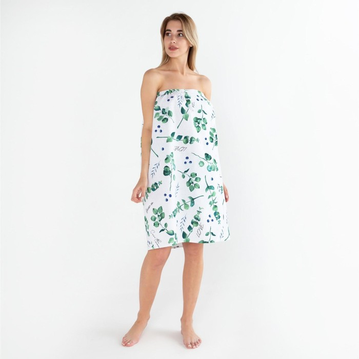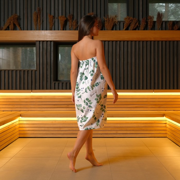 Полотенце для бани «Эвкалипт» женское парео, 80х150±4 см, 100% хлопок, ваф. полотно, 160 гр/м2
