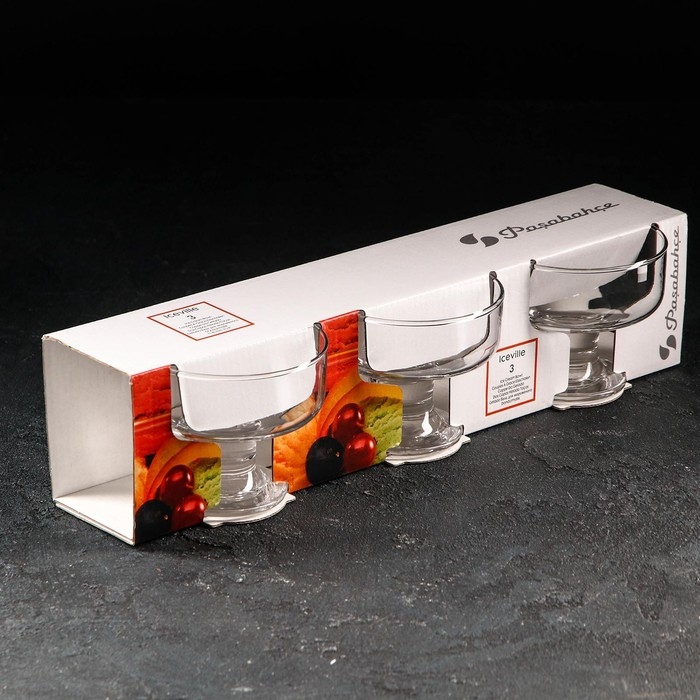 Набор ваз для мороженого стеклянный Ice ville, 265 мл, 3 шт