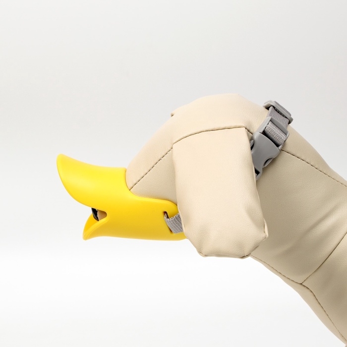 Намордник в форме утиного клюва разработан японскими дизайнерами и интересно смотрится на собаке. Имеет регулятор размера и защелку для быстрого надевания и снятия с собаки. Кроме того, новый намордник для собак не сдавливает морду и не натирает нежную кожу вашего питомца.
