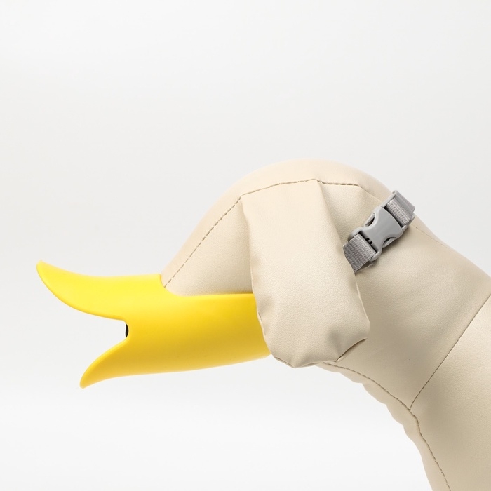Намордник в форме утиного клюва разработан японскими дизайнерами и интересно смотрится на собаке. Имеет регулятор размера и защелку для быстрого надевания и снятия с собаки. Кроме того, новый намордник для собак не сдавливает морду и не натирает нежную кожу вашего питомца.