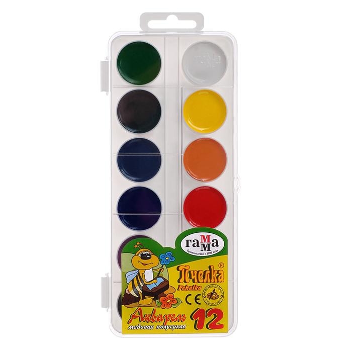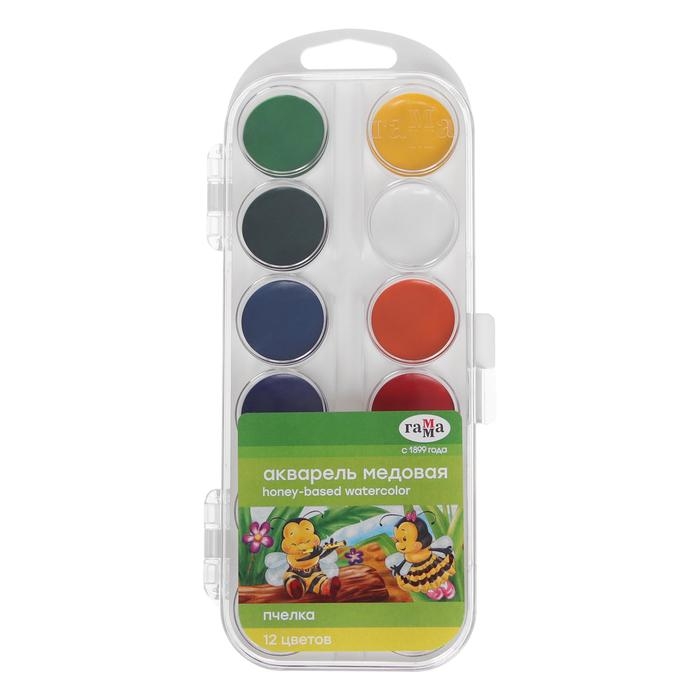 Акварель 12 цветов "Гамма" "Пчёлка", медовая, без кисти, пластик