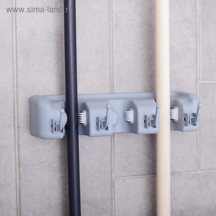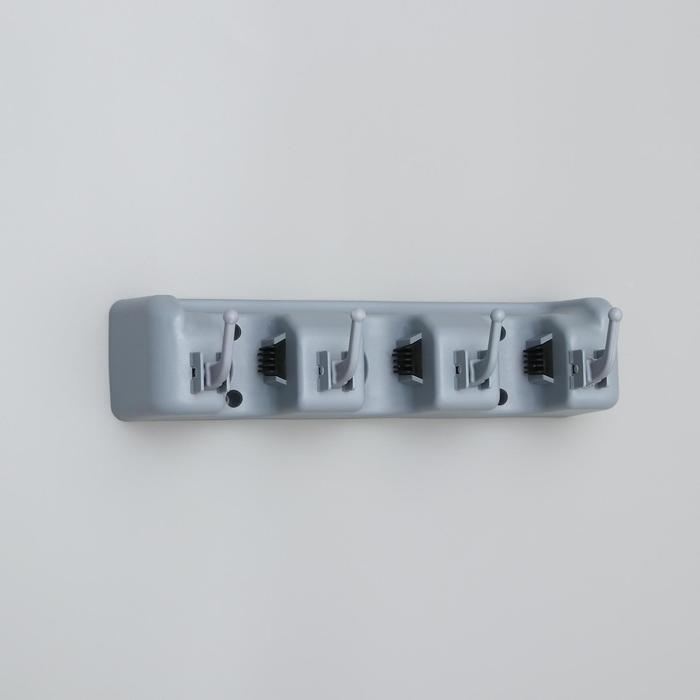 Держатель для уборочного инвентаря с крючками Доляна, 26×6×10 см, серый
