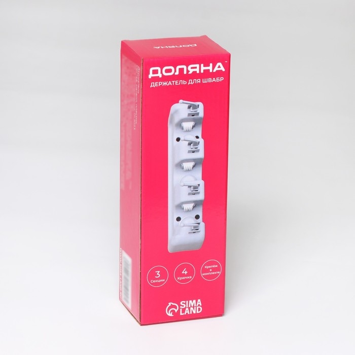 Держатель для швабры и метлы Доляна, с крючками, 3,8×4,8×16 см
