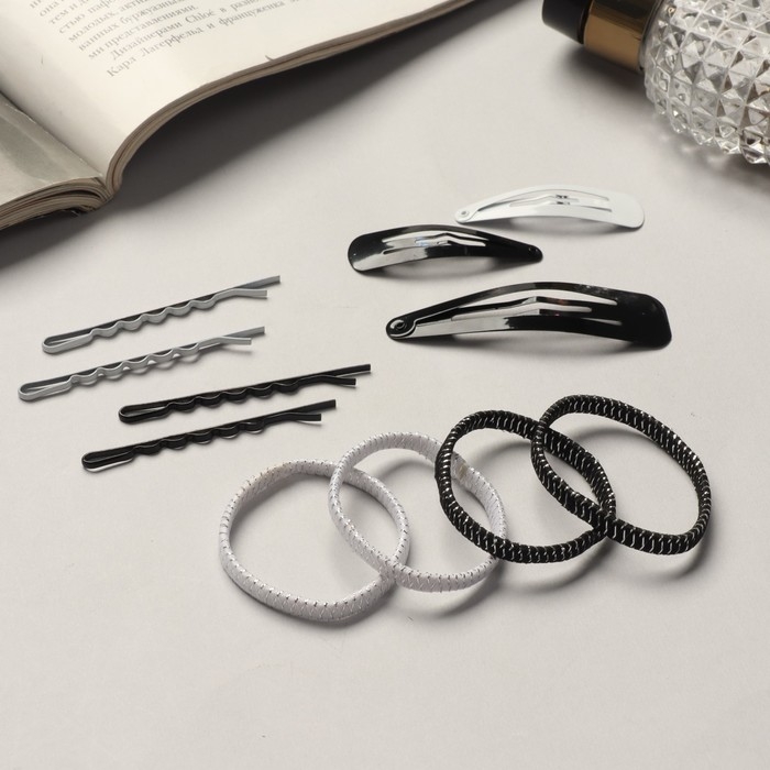 Набор для волос «Классика» (6 шт-4,5 см,8 шт-6 см,2 шт-6,5 см,8 резинок) чёрно-белый поможет сделать аккуратную и красивую причёску за считанные секунды. Маленькие помощники сохранят форму укладки и дополнят шевелюру как декоративные элементы. Сделайте образ ярким!