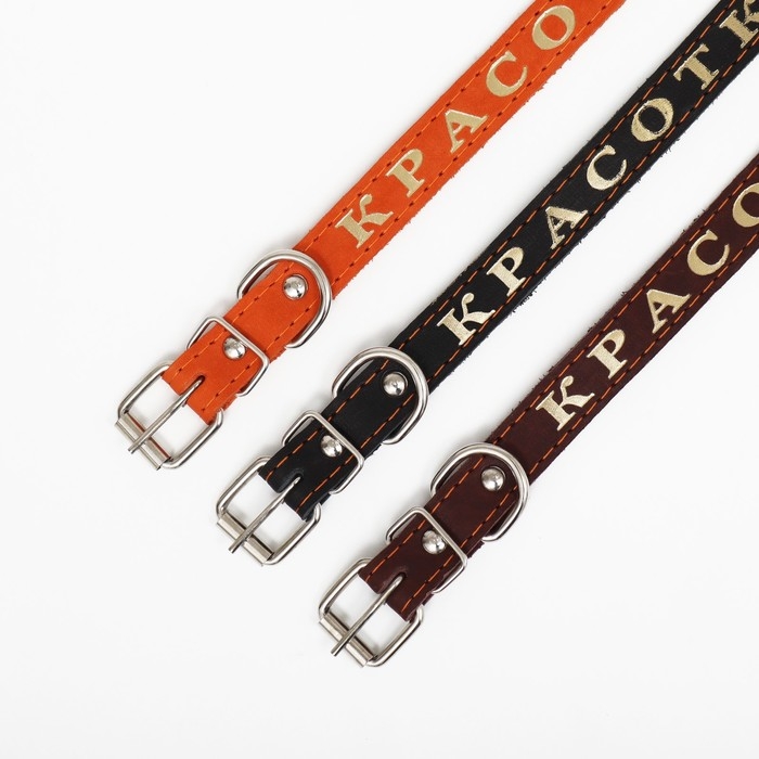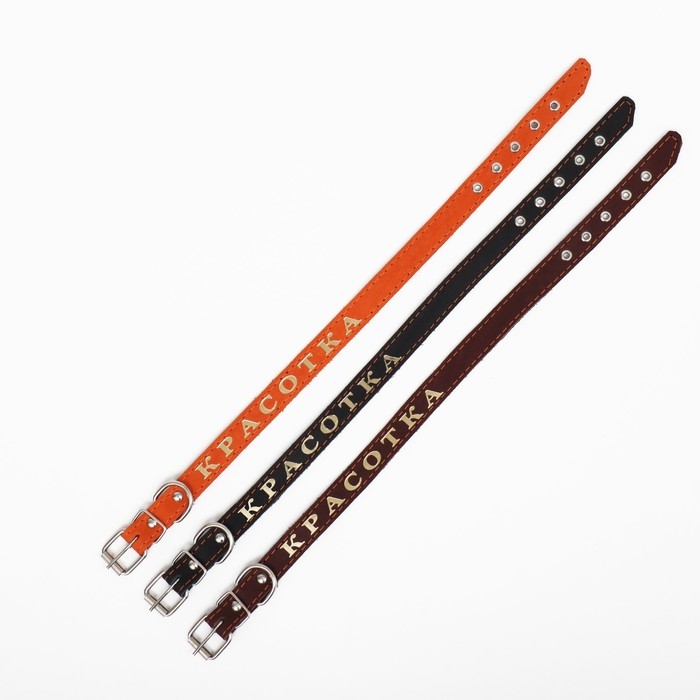 Ошейник кожаный однослойный, тиснёный «Красотка», 48 х 2 см, ОШ 32-43 см, микс цветов