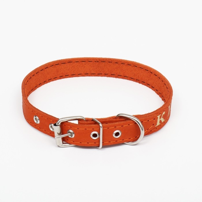 Ошейник кожаный двухслойный, 46 х 2 см, ОШ 25-35 см, коричневый
