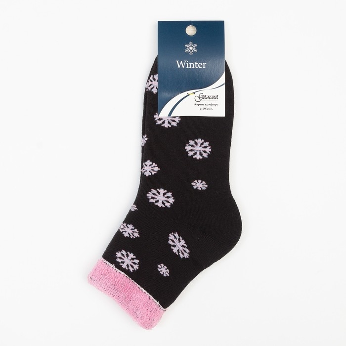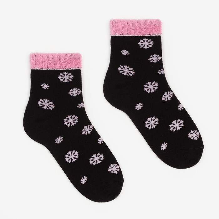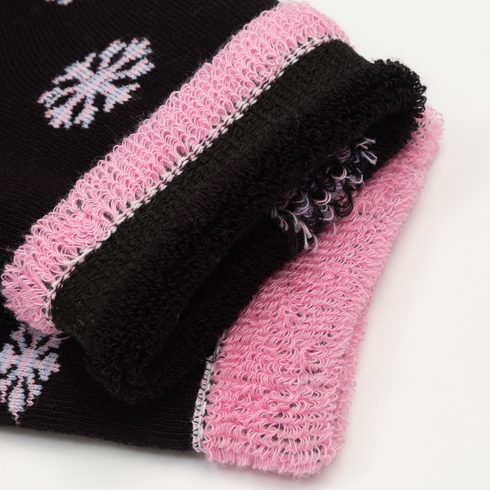 Носки женские новогодние махровые «Снежинки», цвет чёрный, размер 23-25