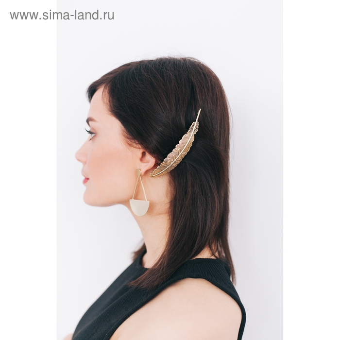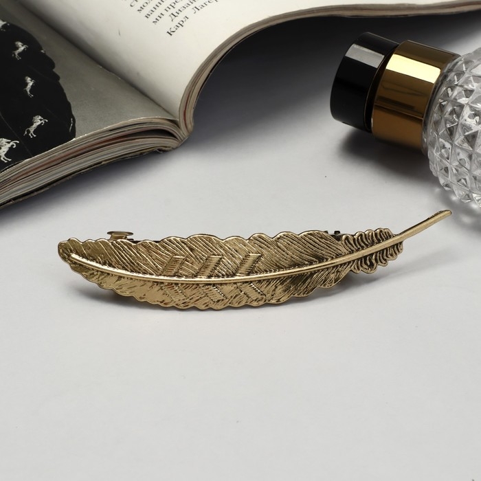 Заколка-автомат для волос "Либерти" перо, 11 см, золото