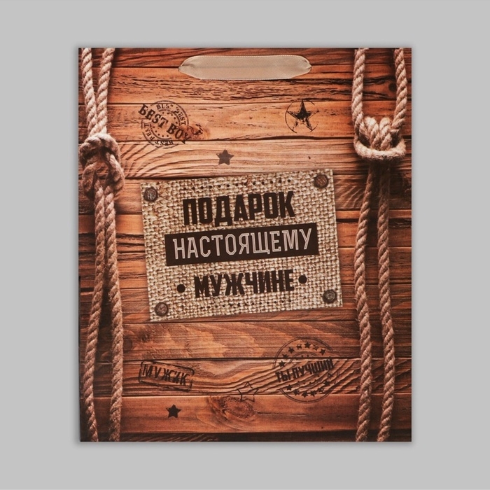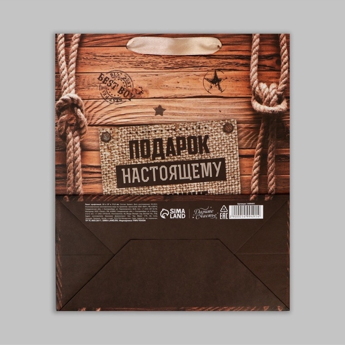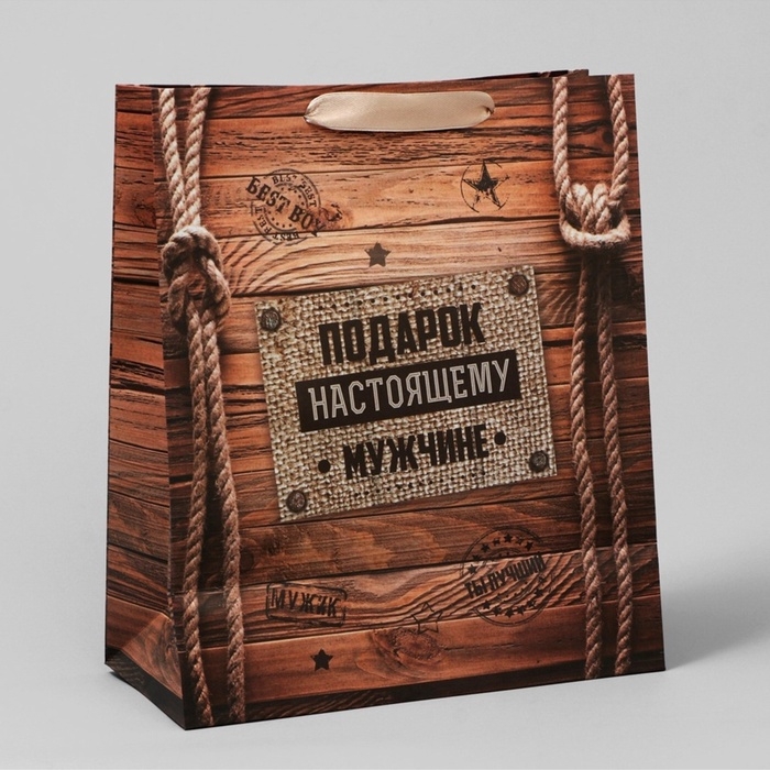 Пакет подарочный крафтовый вертикальный, упаковка, «Подарок настоящему мужчине», 23 х 27 х 8 см