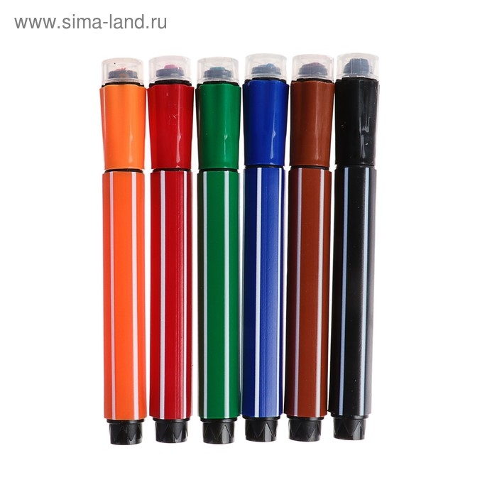 Фломастеры 6 цветов "Полоски", толстые, в блистерной упаковке, вентилируемый коппачок