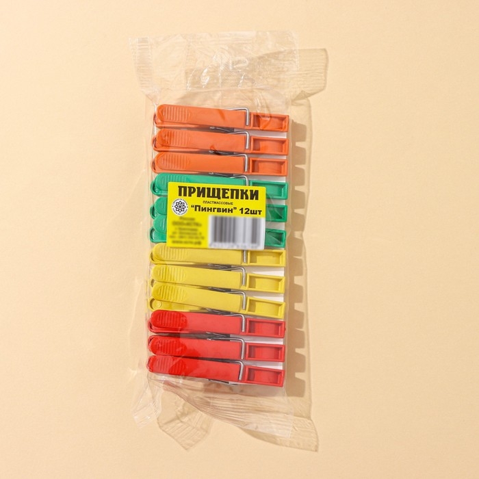 Прищепки бельевые «Пингвин», 8 см, 12 шт, цвет МИКС