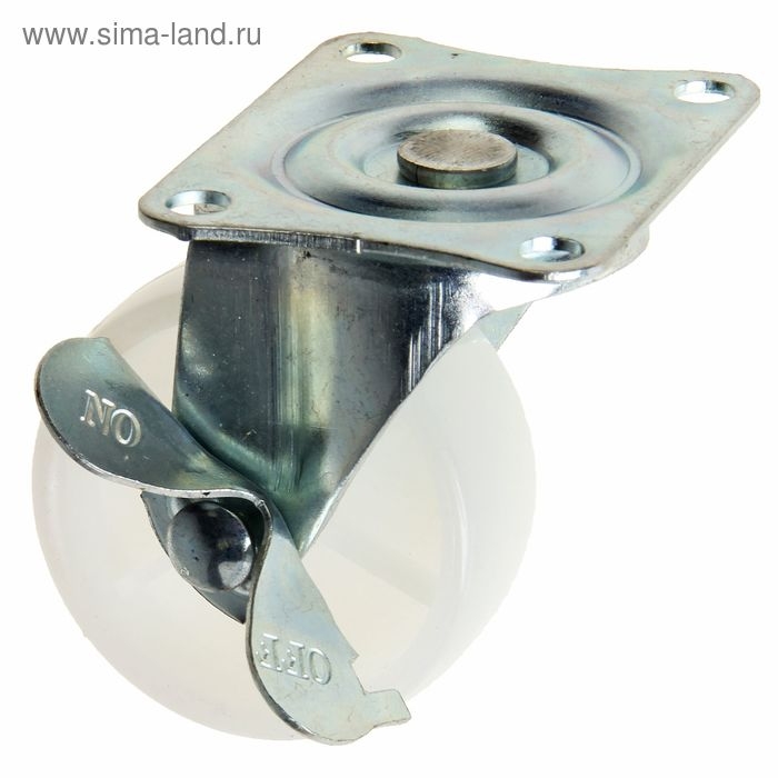Колесо мебельное, d=50 мм, на площадке, с фиксатором, белое