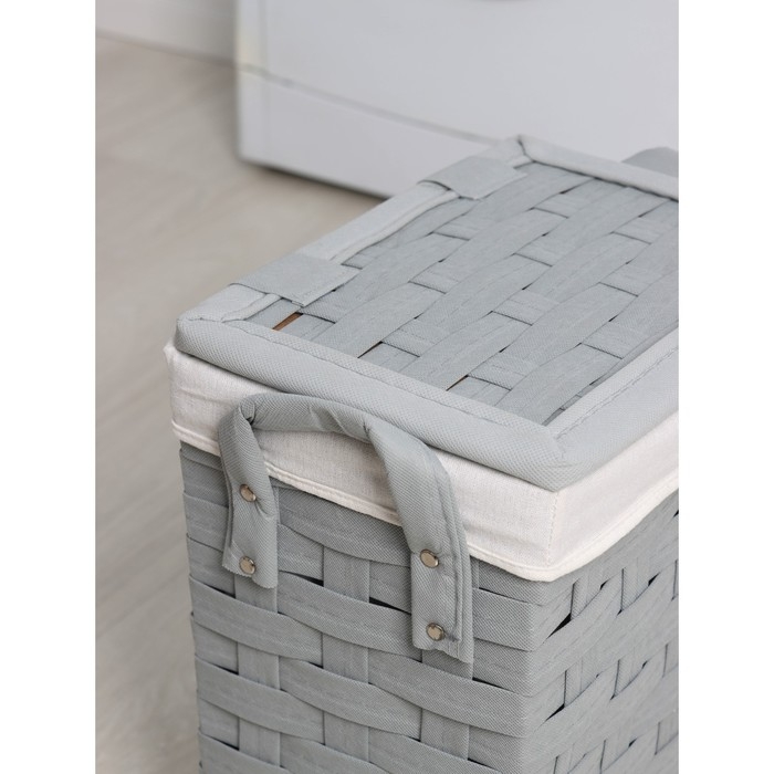 Корзина для белья Доляна «Лён», с крышкой, 37×43×66 см, цвет серый