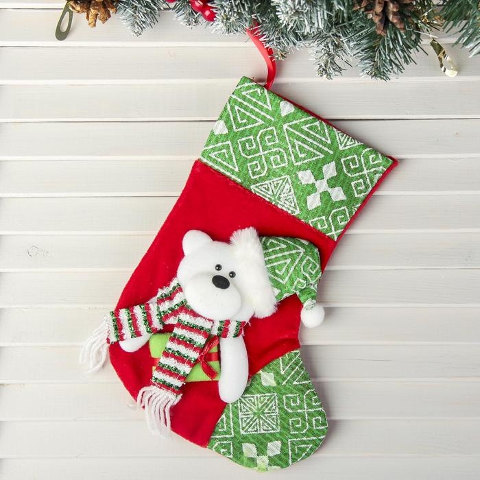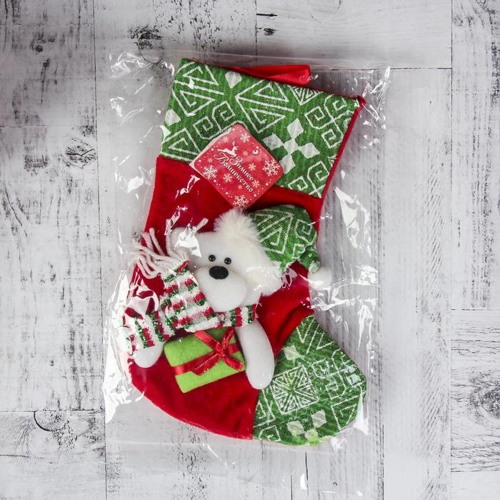 Носок для подарков "Подарочек" медведь, 18,5х26 см, красно-зелёный
