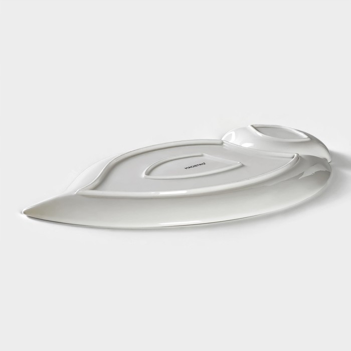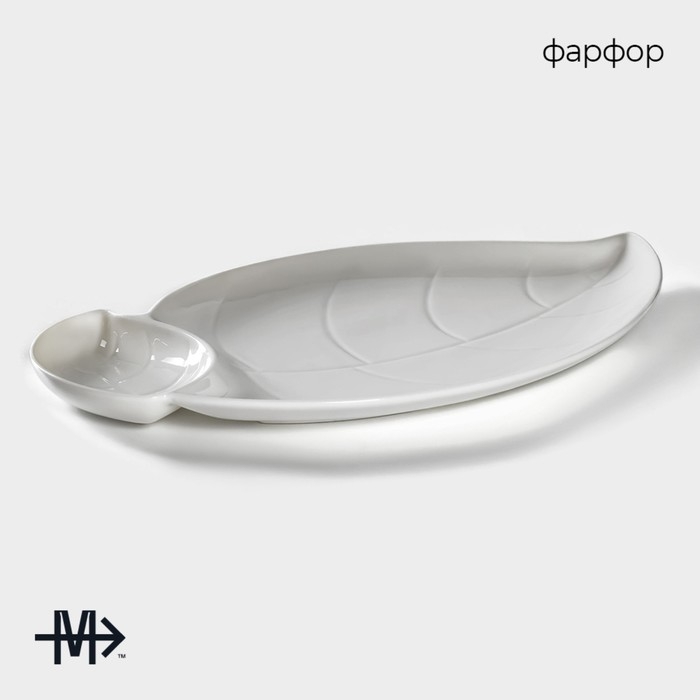 Блюдо фарфоровое с соусником Magistro «Лист Бланш», 33,5×20 см, цвет белый