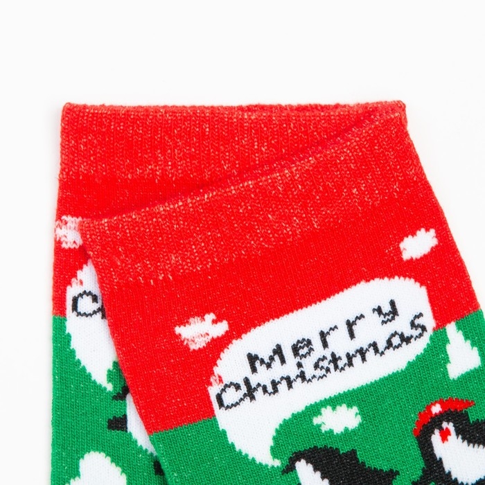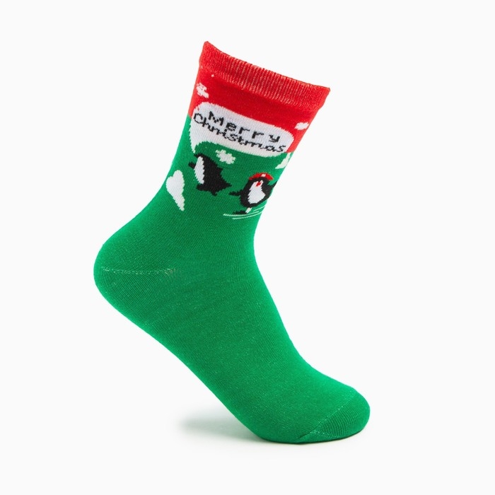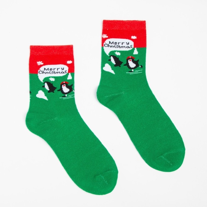 Носки женские новогодние «Пингвин», цвет зелёный, размер 23-26