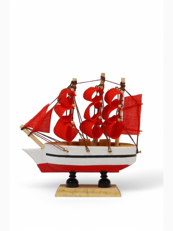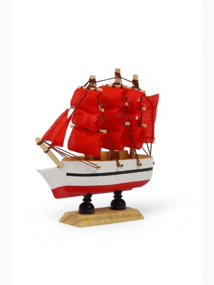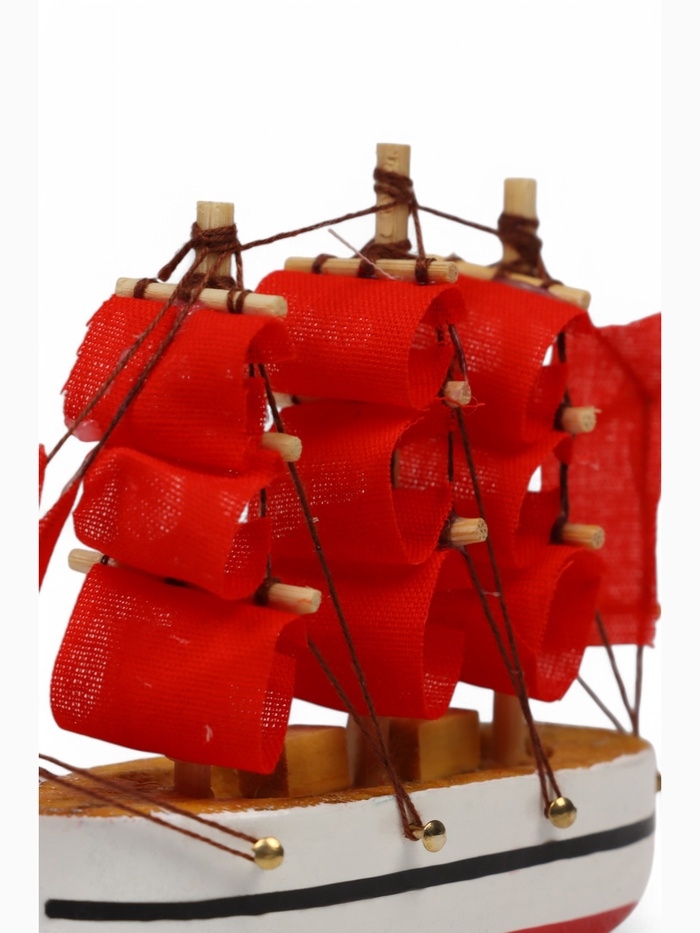 Корабль "Медуза" 10х3х10 см, белый корпус, красные паруса
