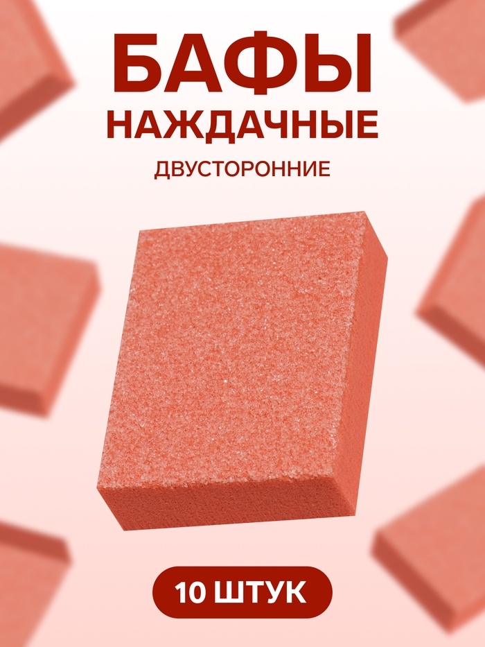 Наждачные бафы для ногтей, набор 10 шт, двухсторонние, 3,5 × 2,5 см, цвет оранжевый