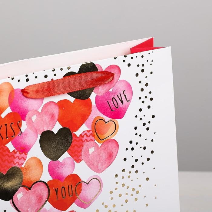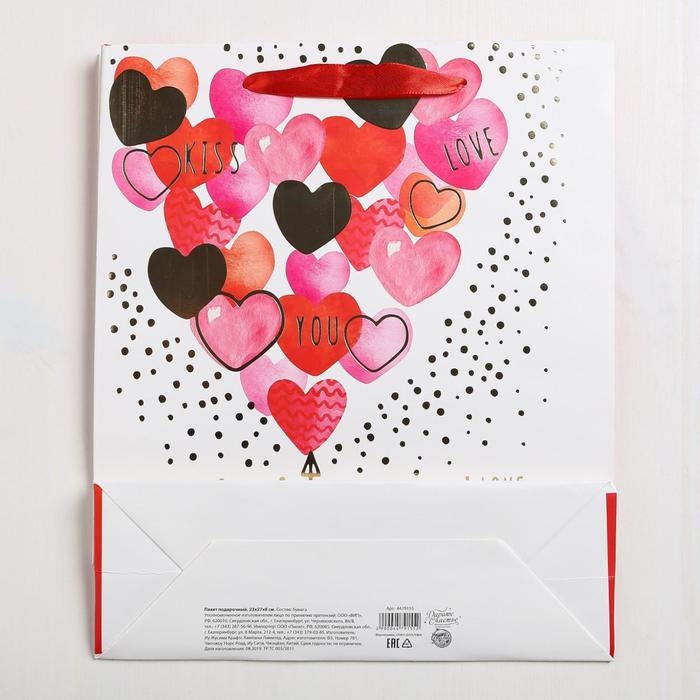 Пакет подарочный ламинированный вертикальный, упаковка, «I love you» с тиснением, ML 23 x 27 х 11,5 см