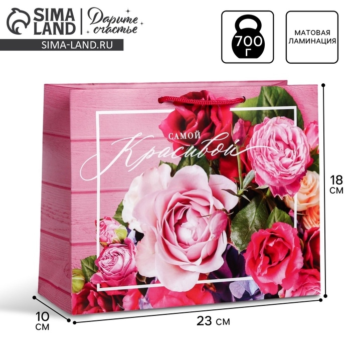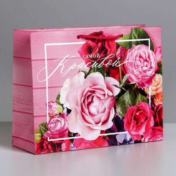 Пакет подарочный ламинированный горизонтальный, упаковка, «Самой красивой», MS 23 х 18 х 8 см