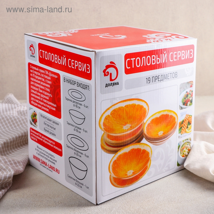 Тарелки изготовлены из качественного стекла, отличаются надежностью и долговечностью. Они не впитывают запахи и легко очищаются. Стильный дизайн позволит использовать тарелки как в повседневной сервировке, так и на праздниках и торжествах. В комплекте 19 предметов: салатник, 6 десертных тарелок, 6 обеденных тарелок, 6 мисок.