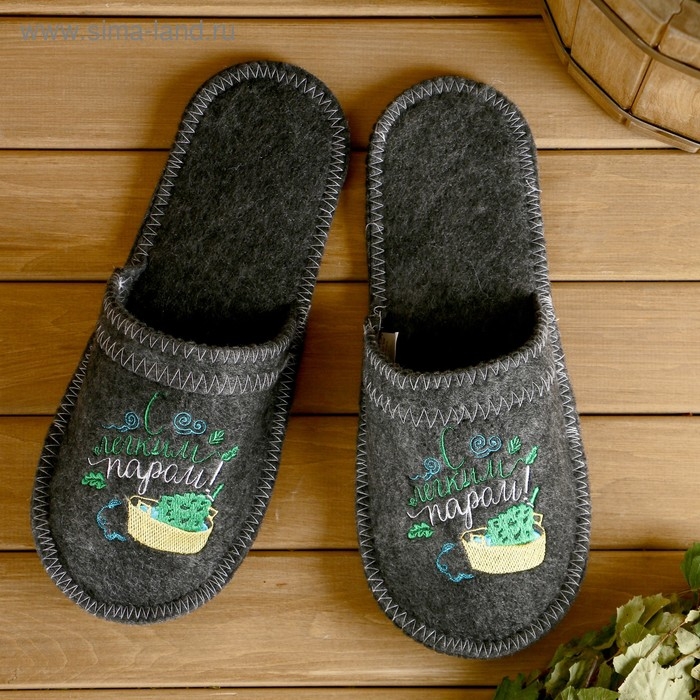 Тапочки банные войлок с вышивкой "С легким паром", ушат