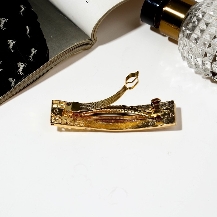 Заколка-автомат для волос «Геометрия», прямой кружевной, 8 см, золото
