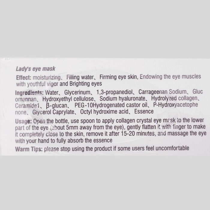Способ применения: извлеките патчи с помощью лопаточки и нанесите на очищенную кожу вокруг глаз. Снимите через 20–30 минут и сделайте лёгкий массаж подушечками пальцев. Для достижения наилучшего эффекта храните упаковку с патчами в холодильнике.