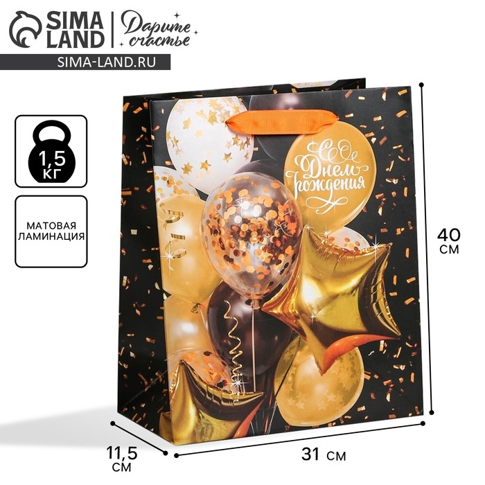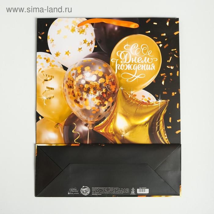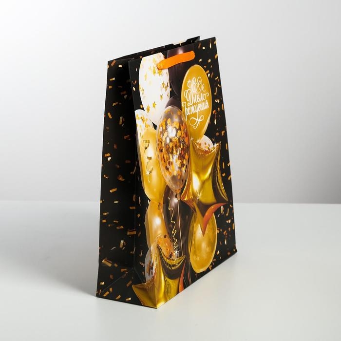 Пакет подарочный ламинированный вертикальный, упаковка, «С Днем Рождения», L 31 х 40 х 11,5 см