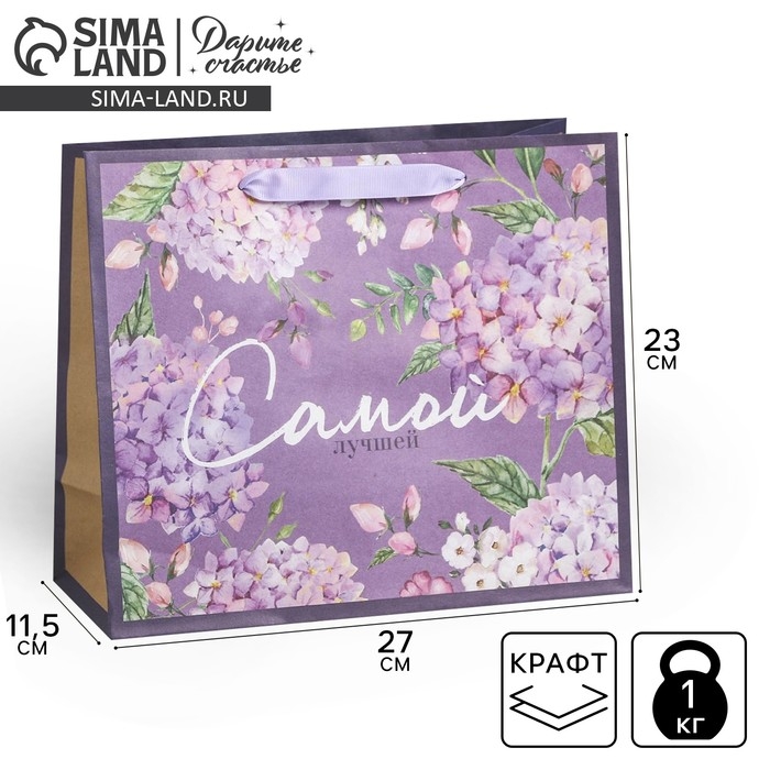 Пакет подарочный крафтовый горизонтальный, упаковка, «Самой лучшей», ML 27 х 23 х 11,5 см