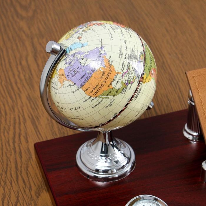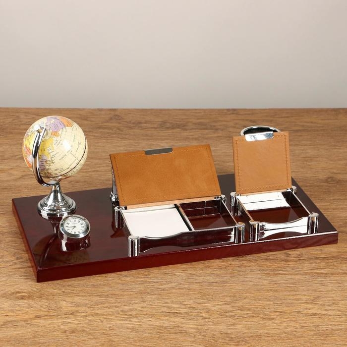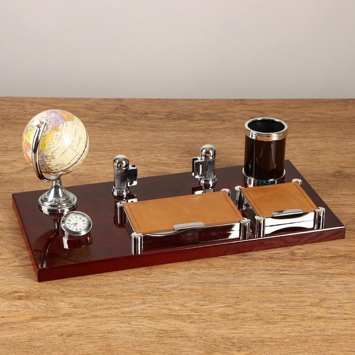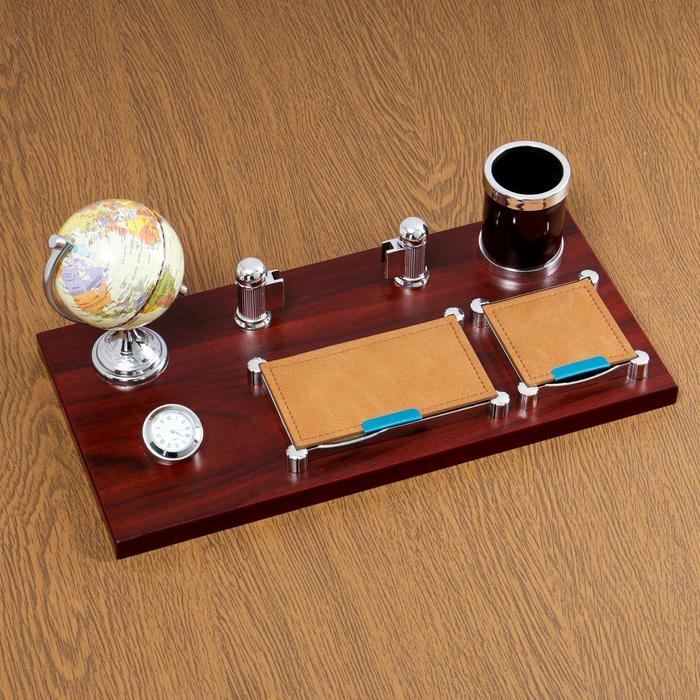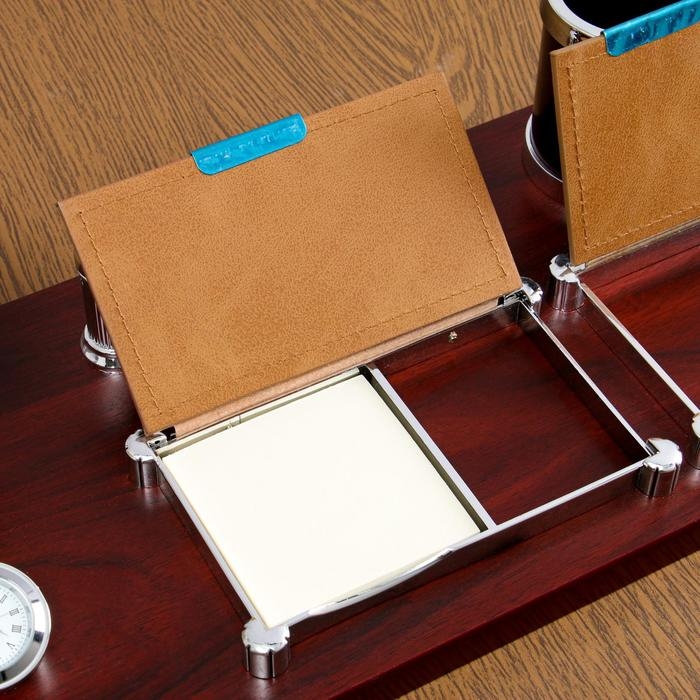 Набор настольный 6в1 с визитницей и часами, красное дерево