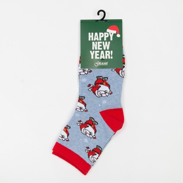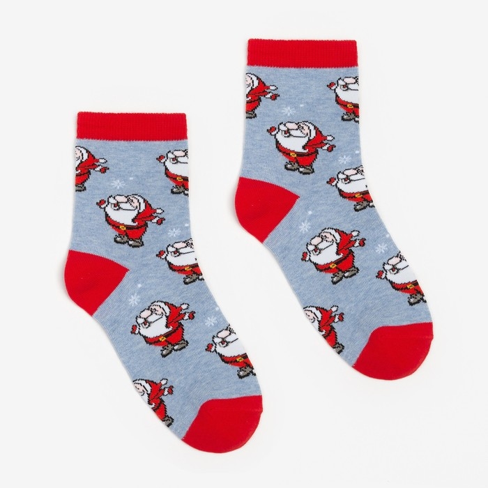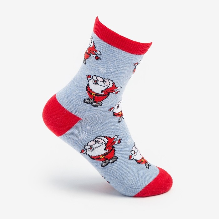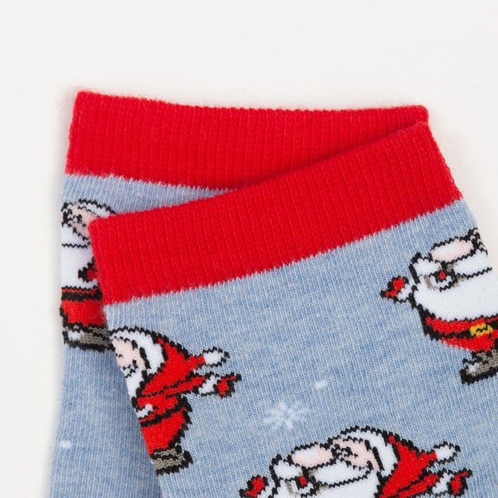 Носки женские новогодние «Дед Мороз», цвет светло-голубой, размер 23-25