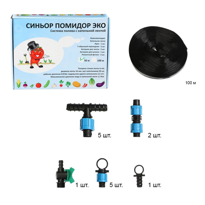 Набор для капельного полива, с капельной лентой 50 м, «Синьор Помидор» ЭКО