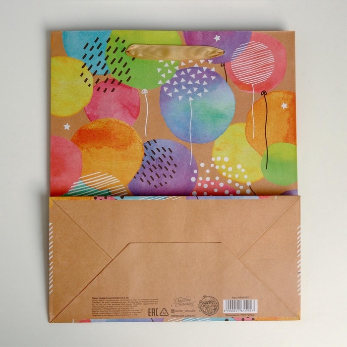 Пакет подарочный крафтовый вертикальный, упаковка, Happy birthday, ML 23 х 27 х 11.5 см