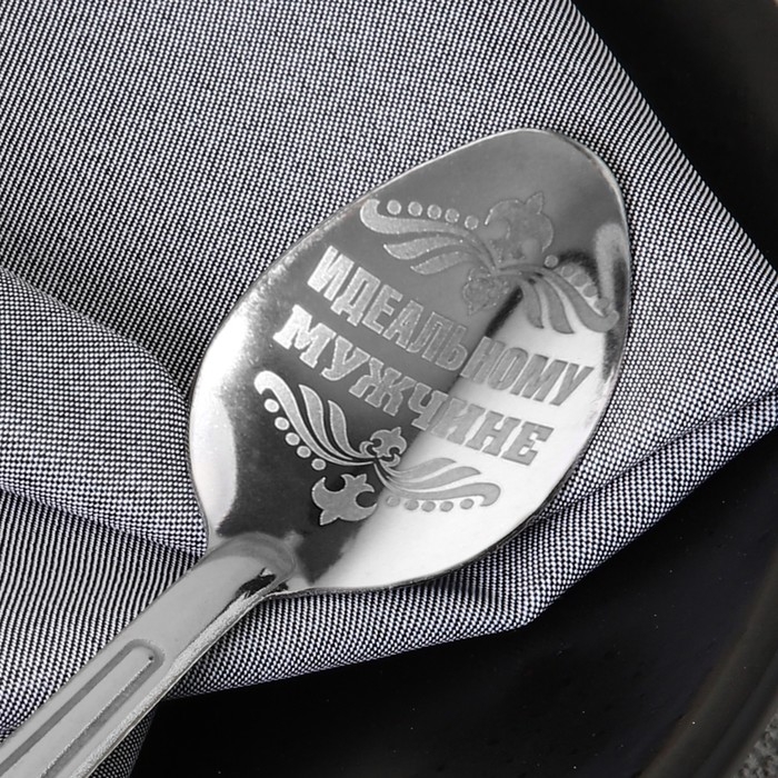 Ложка чайная с гравировкой «Для настоящего мужчины», на подарочной открытке, 3 х 14 см.