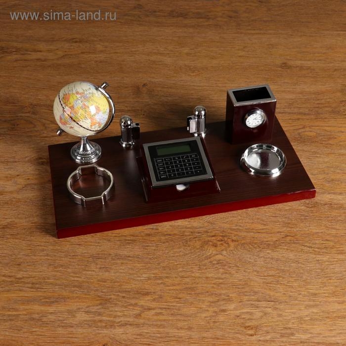 Набор настольный 7в1 (каранд-ца с часами, визитн, глобус, подст, кальк, подст д/мелочей)
